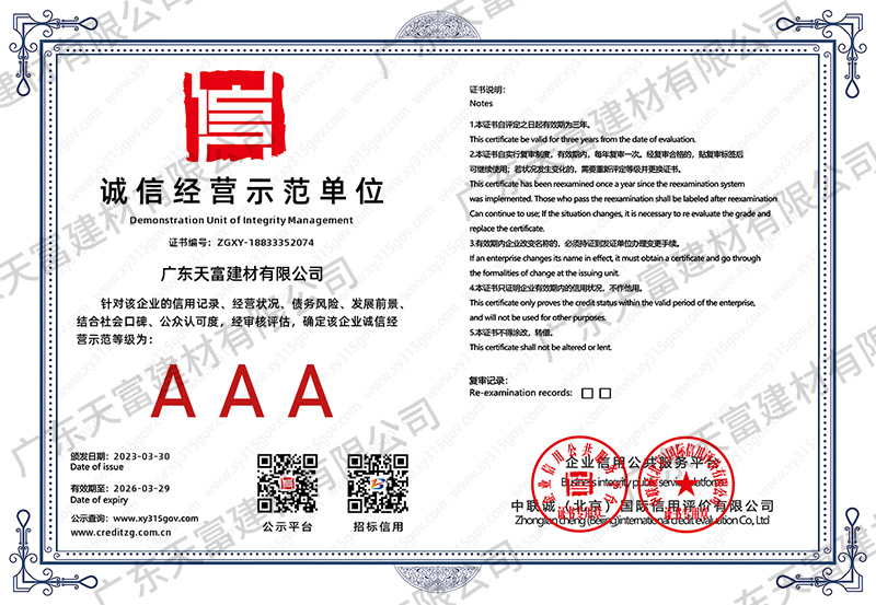 企業信用評價AAA級信用企業